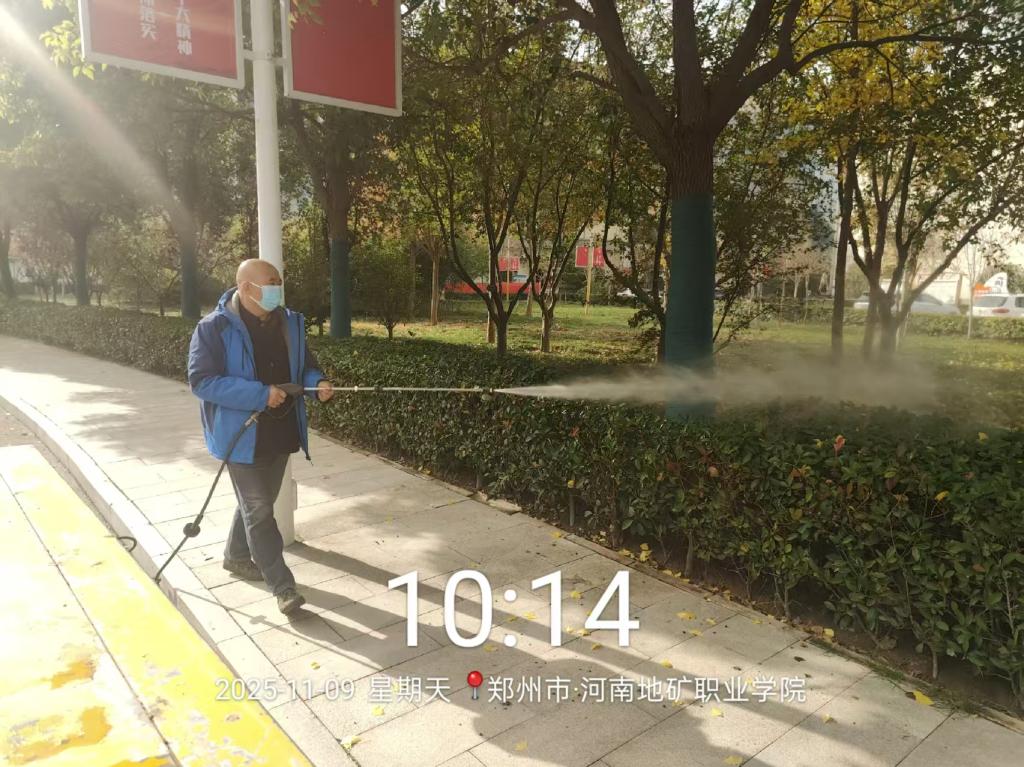 近期,随着冬季流感等呼吸道传染病进入高发季节,为切实保障广大师生员工的身体健康与教学科研秩序的正常运行,后勤服务中心迅速响应,主动作为,于近日在校本部、登封校区内组织开展了专项预防性消杀行动。